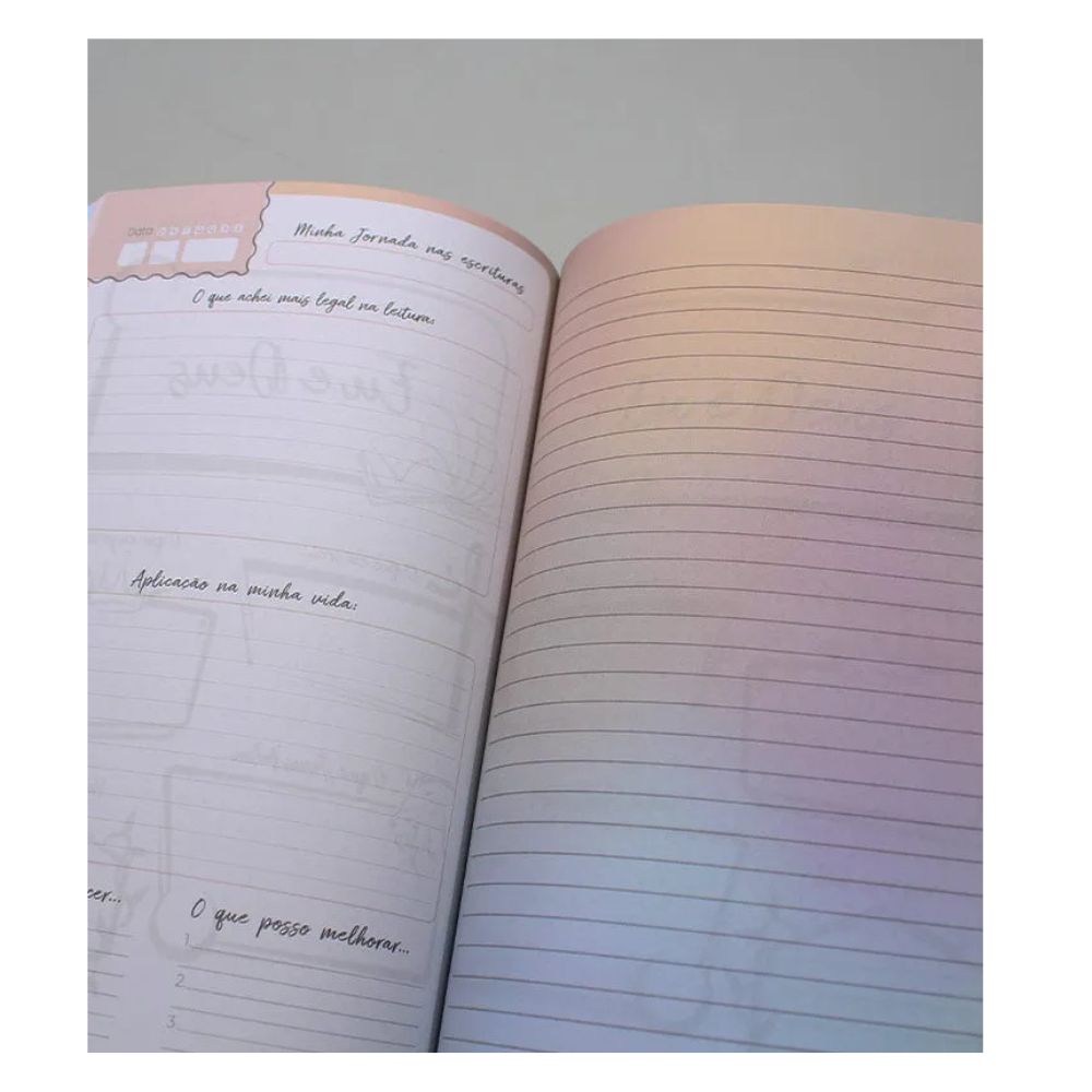 Neles, poderá registrar suas orações, seus estudos, criar listas de pedidos e de gratidão, além de anotar seus estudos bíblicos e de que forma você os aplicará em sua vida.