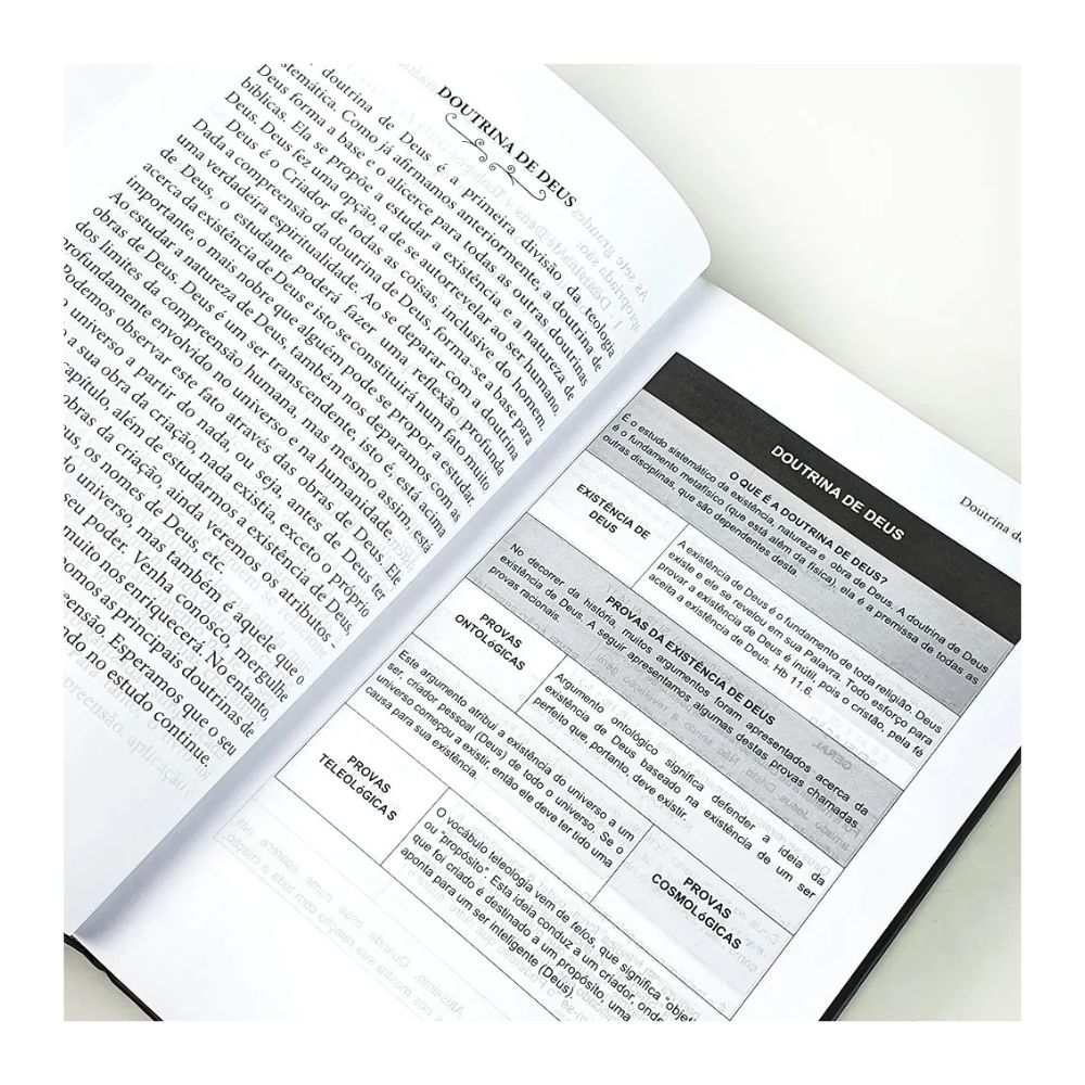 Uma Biblia Sagrada com estudo bíblico elaborado em quadros de Teologia Sistemática, com o objetivo de levar o leitor a aprofundar o estudo teológico das Escrituras Sagradas, com comentários de grandes teólogos como Louis Berkhof, J. I. Paker, MIllard J. Erickson, Wayne Gruden Augustus Hopkins Strong, Charles Hodge, Lewis Sperry Chafer e Eurico Bergstén. Possui estudos de Teologia Reformada Calvinista, Pentecostal, Puritana, atendendo as necessidade das igrejas evangélicas, para líderes, pastores, ministros, homens e mulheres.