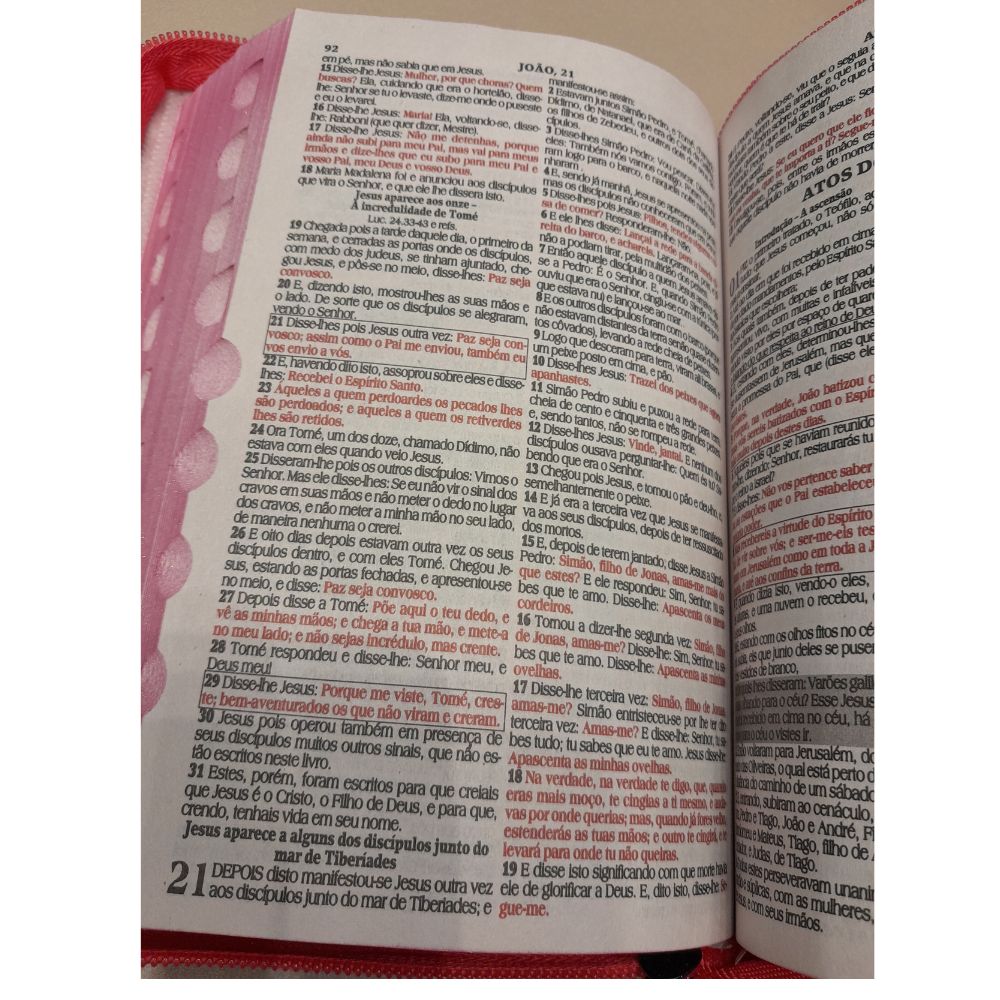 Esta edição da Bíblia Sagrada tem formato compacto e letra média. É ideal para quem busca conforto na leitura da Palavra de Deus e, ao mesmo tempo, praticidade no uso e transporte diários. Com harpa cristã, promessas em destaque e palavras de Jesus em vermelho.