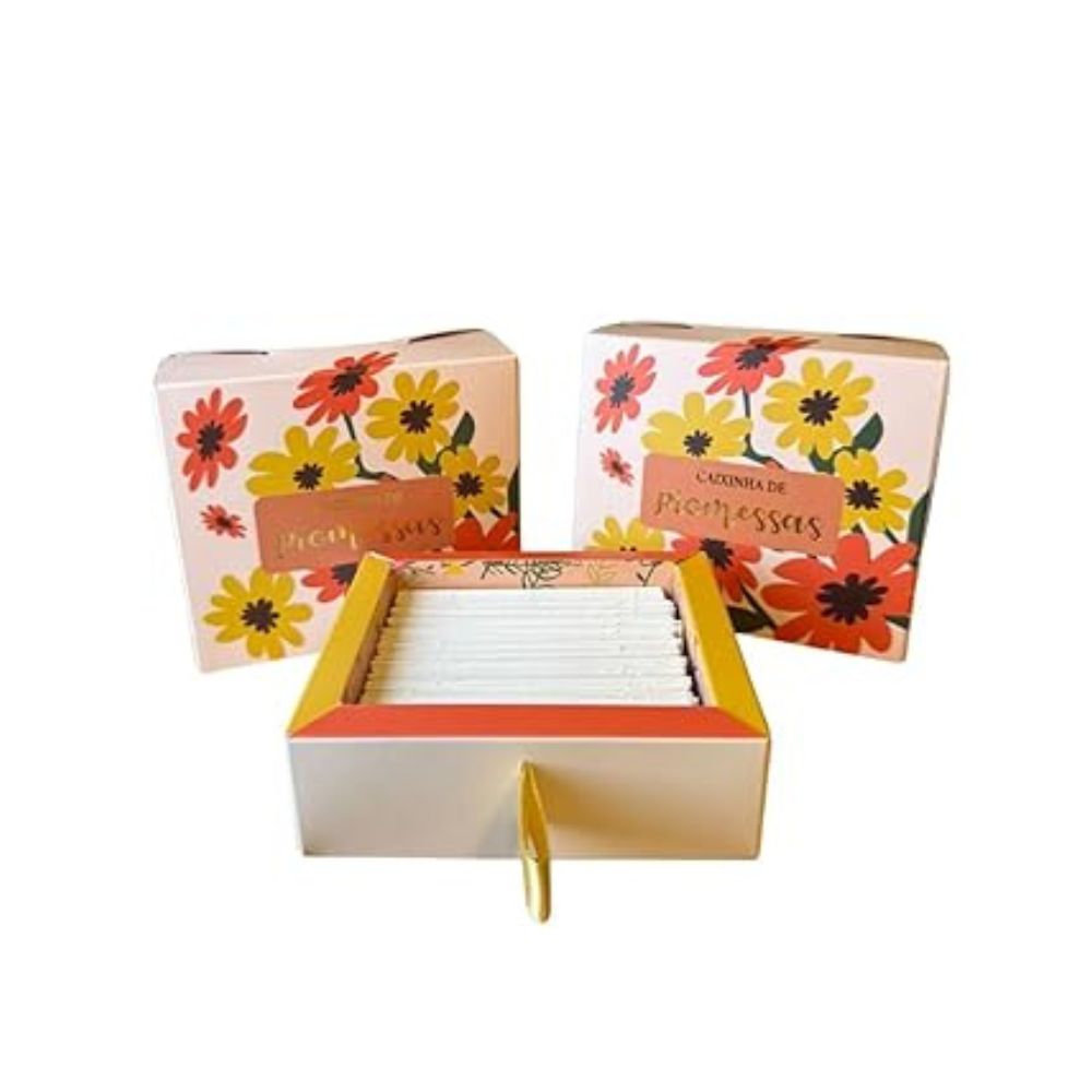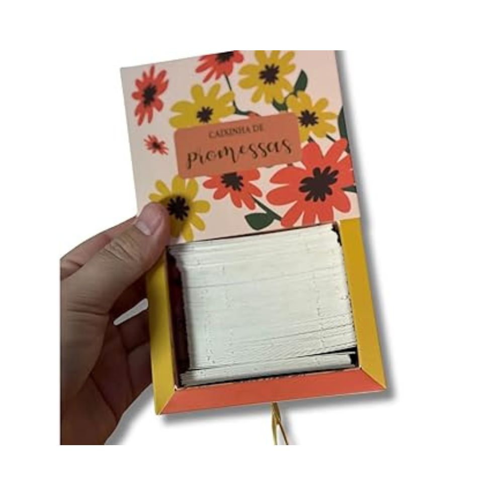 Quando a alma precisa de uma palavra do Céu Quantas vezes o coração aperta e você gostaria de ouvir de Deus exatamente aquilo que precisa para seguir em frente? Muitas mulheres vivem dias de cansaço, ansiedade e até de solidão, sem perceber que uma simples lembrança da Palavra pode mudar completamente o rumo de seu dia. Outras pessoas, no entanto, caminham fortalecidas porque aprenderam a se abastecer diariamente da verdade bíblica. Uma promessa no momento certo traz paz, esperança e força para continuar. Foi pensando nisso que surgiu o Caminhada de Promessas, uma linda caixinha com 140 cartinhas de versículos bíblicos, cada uma trazendo um lembrete de que você não está sozinha. Basta puxar uma nova promessa e deixar que Deus fale ao seu coração de maneira prática e transformadora. Imagine começar a manhã tirando uma cartinha que diz: “O Senhor é o meu pastor; de nada terei falta” (Salmo 23:1). Ou, em meio à correria do dia, ser lembrada: “Alegrem-se sempre” (1 Tessalonicenses 5:16). São mensagens que acalmam, renovam e restauram a fé. Não deixe os desafios apagarem a sua esperança. Tenha sempre por perto uma fonte de ânimo e direção vinda diretamente da Palavra de Deus.