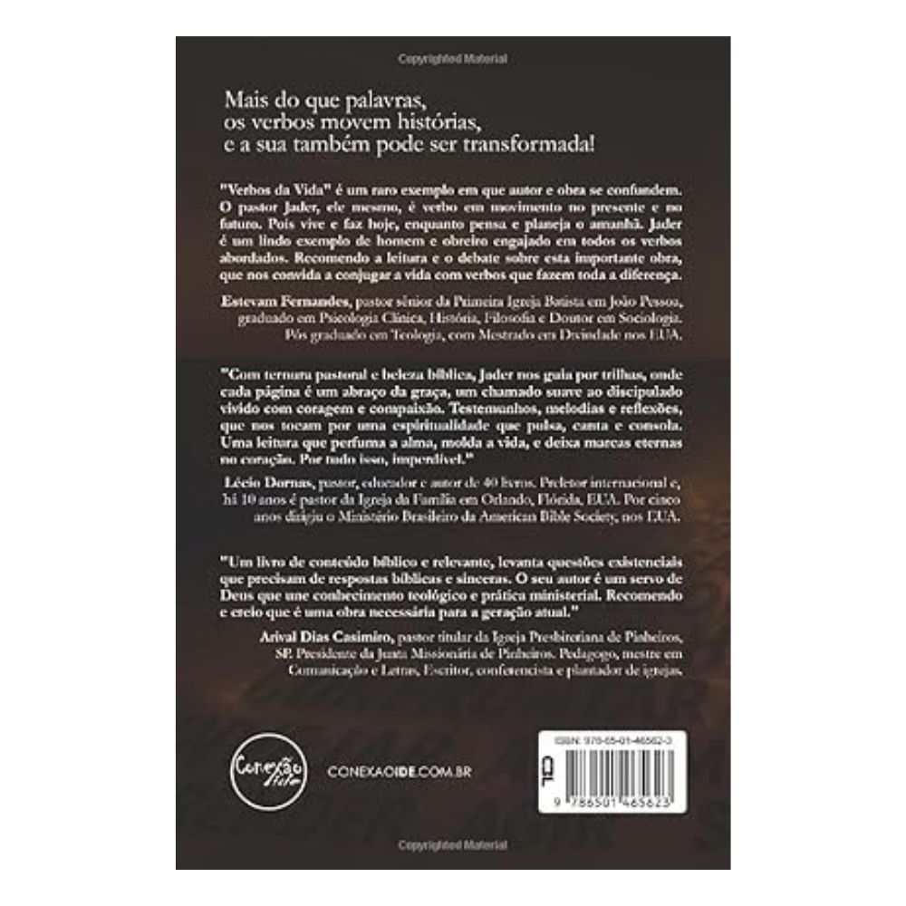 Verbos da Vida é mais que um livro: é um chamado diário para colocar o Evangelho em movimento, conjugando a vida nas regras do Verbo vivo. Ideal para leitura pessoal, estudos em grupo ou como presente transformador. Prepare-se: você não será o mesmo depois de conjugar esses verbos.